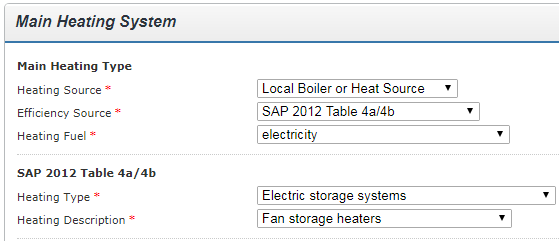 The heating controls should be input as 'Automatic charge control'.